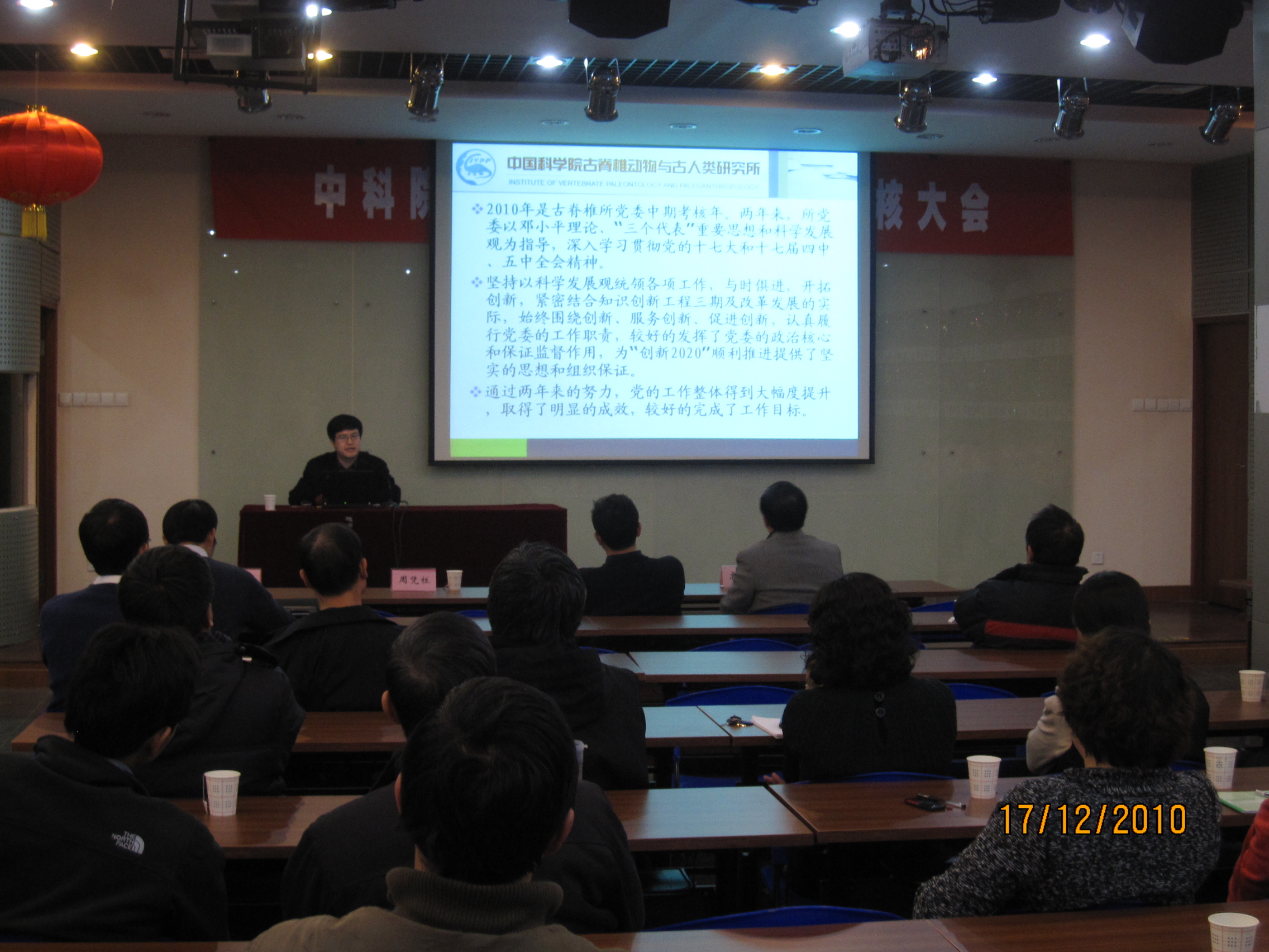 12月17日,古脊椎所召开党委届中考核大会。考核组由北京分院院长助理、京区党委组织部部长肖建春带队。古脊椎所党委委员、纪委委员、党支部书记、各部门正副处长(正副主任)、副研以上科技人员、工会职代会常委、民主党派代表人士、团总支书记、妇委会主任等参加了会议。会议由肖建春同志主持。