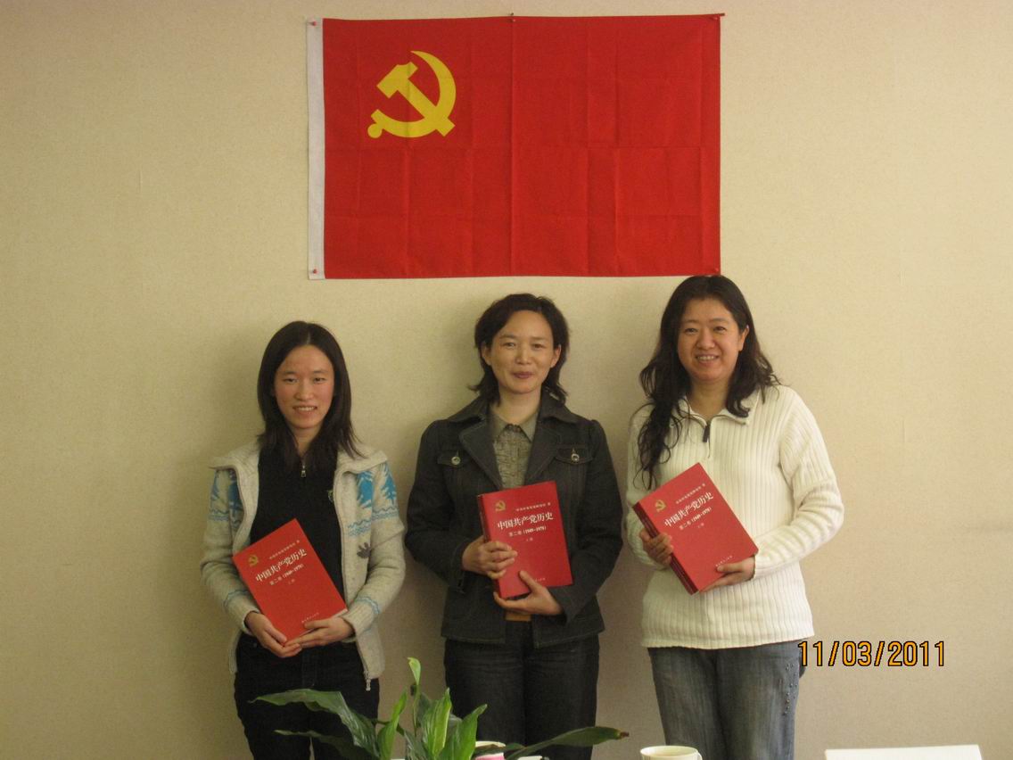 会上,田晓霞、杨周、李婧三位同志分别宣读了本人的入党志愿书之后,她们的入党介绍人分别介绍了三位同志的思想情况和现实表现,支部书记魏涌澎介绍了三位同志的培养考察过程。与会党员对三位同志的入党申请进行了讨论,充分肯定了三位同志对党的思想认识以及工作表现,一致认为三位同志符合了预备党员的基本要求;同时还对她们提出了殷切的希望,希望他们能以更高的标准要求自己,进一步加强党性锻炼,不断学习进取,努力成为优秀的共产党员。经过与会党员的举手表决,一致同意接收田晓霞、杨周、李婧三位同志为中国共产党预备党员。支部随后为三位预备党员发放了《中国共产党党史-第二卷》,供她们认真学习。