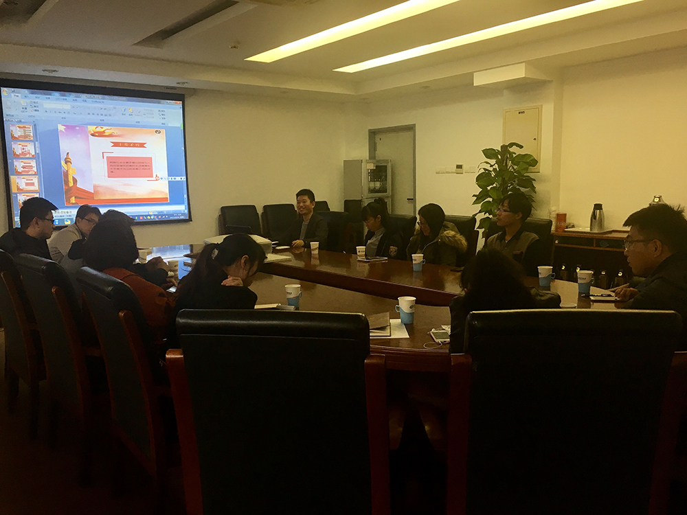 此次会议由龚宴欣主持,支部联系人魏涌澎老师出席会议。龚宴欣带领大家共同学习了习近平总书记十九大报告,报告从总结我党所取得历史性成就,到提出当下我国历史方位,两大重大判断,主要矛盾,指明了我党未来方向的十四个基本方略,九方面理论分析和政策指导,八个明确,八个执政本领,还学习了新修订的《党章》的主要内容。此外,还特别强调了习近平总书记对广大青年所寄予的“华夏复兴待后生”的殷切期待,鼓励大家要坚定理想信念,志存高远,脚踏实地,勇做时代的弄潮儿。