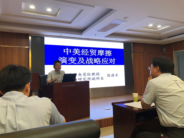 为使广大党员更好地了解时政,在全球政治大背景下更好地理解主题教育的意义和内涵,所党委特邀中共中央党校教授、世界经济所副所长陈建奇博士为全体党员上了一堂题为“中美经贸摩擦演变及战略应对”的专题党课,陈教授系统介绍和分析了中美贸易关系的背景、演变过程、当前局势、应对策略等内容。通过生动的案例、科学数据分析和学习,全体党员了解到开展“不忘初心、牢记使命”主题教育的国际局势和背景,更加坚定了科技报国之心。