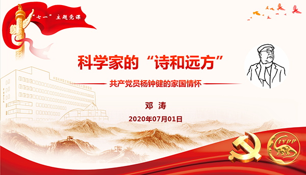 为庆祝建党99周年,深入学习习近平新时代中国特色社会主义思想和党的十九大精神,7月1日下午,古脊椎所党委组织开展“七一”主题活动。党委书记邓涛为全所党员作了题为《科学家的“诗和远方”-共产党员杨钟健的家国情怀》的线上党课。各党支部认真组织党员学习,并结合各自业务实际,开展了形式多样的主题活动。