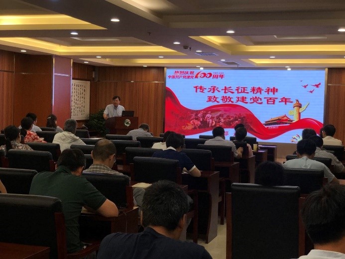6月30日上午,为庆祝中国共产党成立100周年,党委书记、所长邓涛为全所党员讲了题为《传承长征精神 致敬建党百年》的专题党课,党课采取线上加线下的形式,全所上百名党员认真学习了党课。