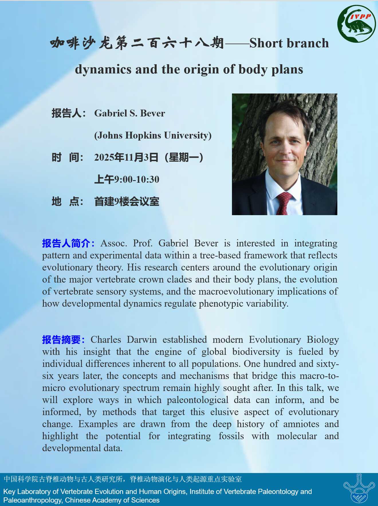 咖啡沙龙第二百六十八期——(一)Short branch dynamics and the origin of body plans(二)Integrative neuroanatomy and the origin of avian powered flight