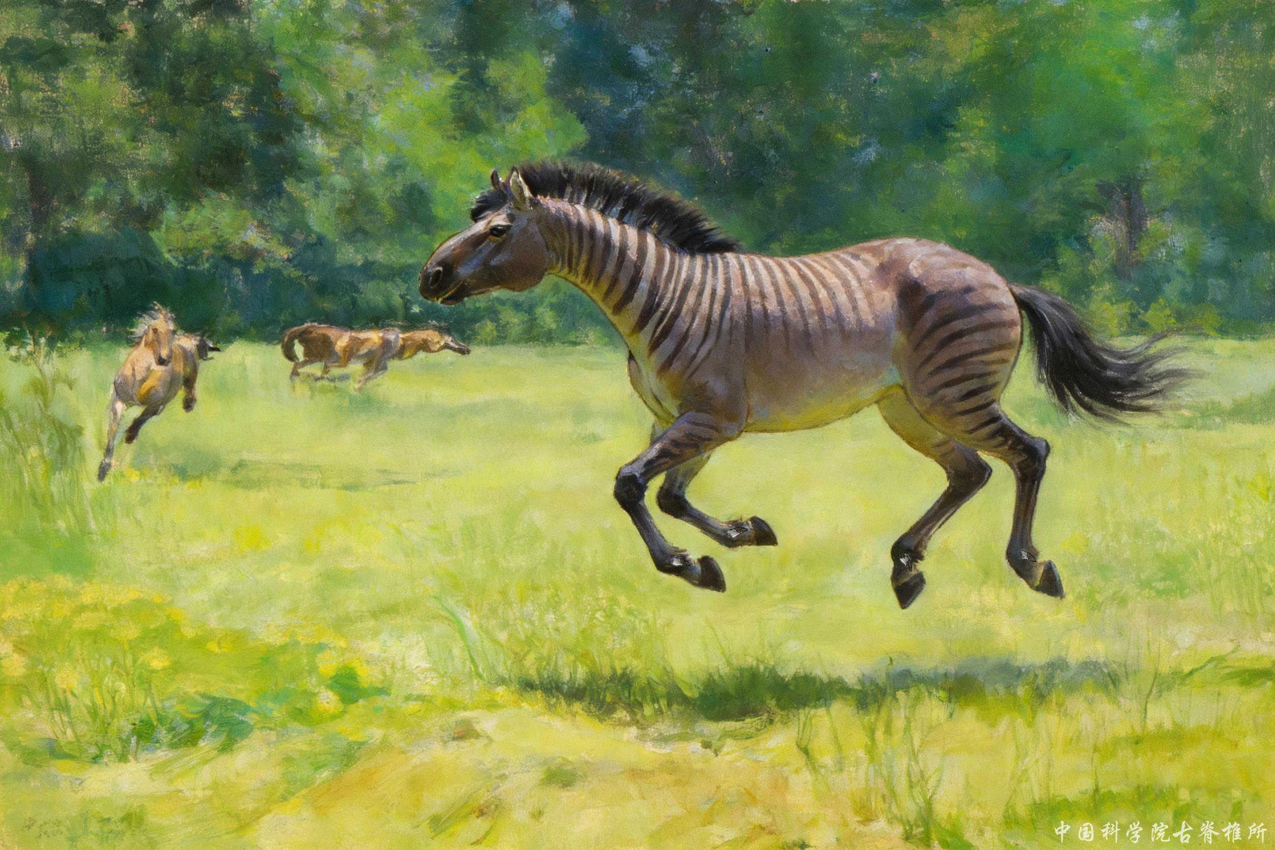 长鼻三趾马奔跑于开阔环境的生态复原