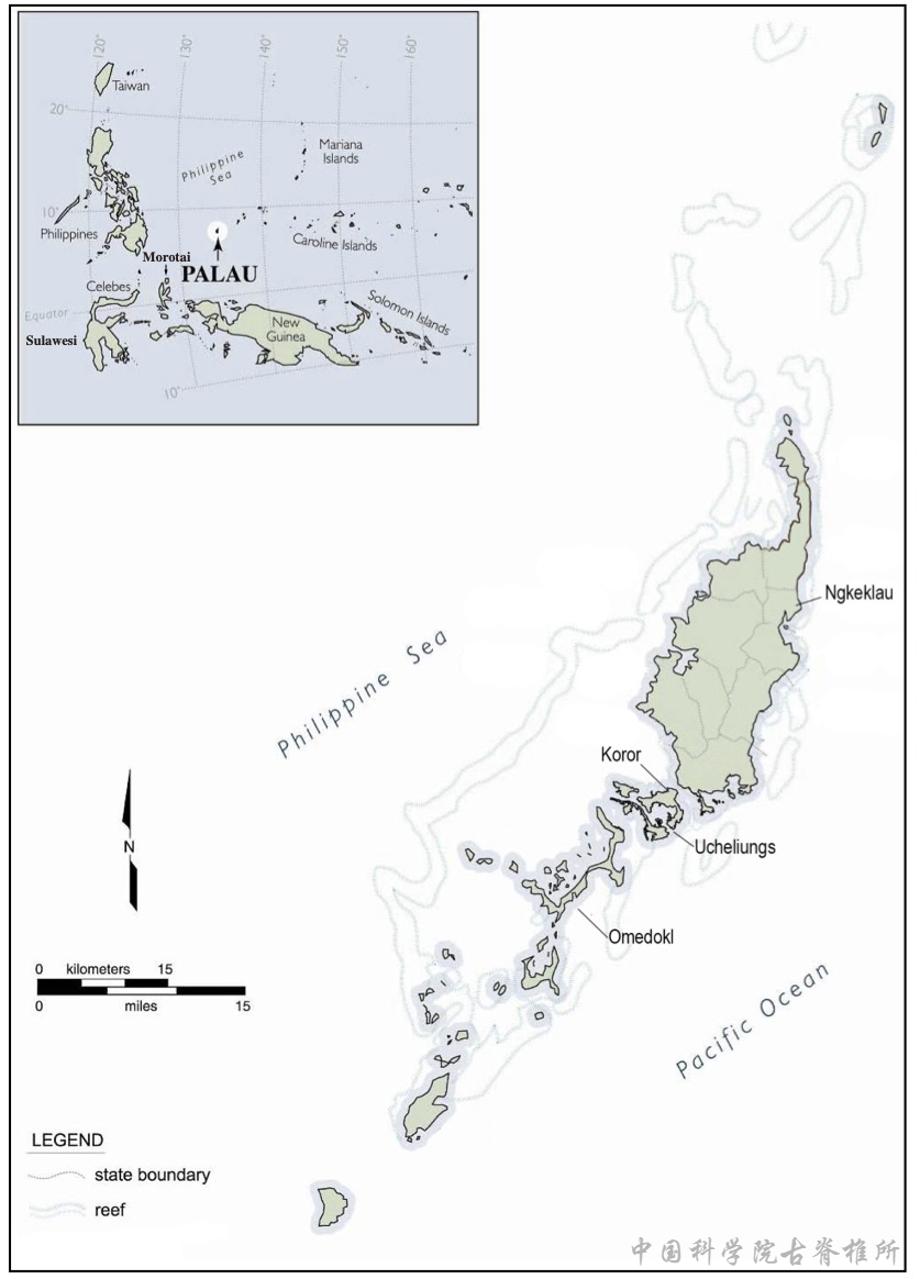 图1:帕劳群岛地图及采样地点