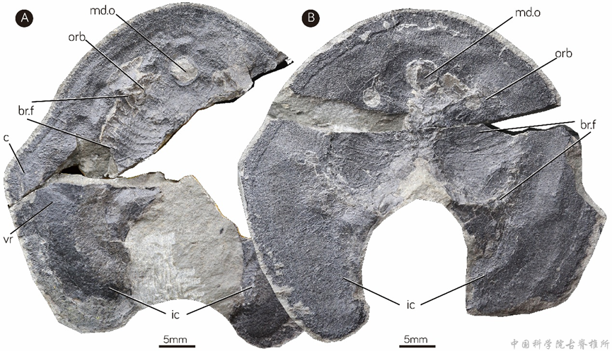 盔甲鱼类是东亚地区特有的无颌类脊椎动物,仅发现于中国和越南北部,在志留——泥盆纪地层中。作为现生有颌脊椎动物的无颌类祖先类群之一,其化石记录为探索颌的起源、四肢的起源等脊椎动物演化的关键问题提供了重要线索。多鳃鱼目是盔甲鱼类中多样性最高的类群之一,早泥盆世的云南曲靖是其重要的演化辐射中心,此次发现的短耳鸮甲鱼化石,采自曲靖市麒麟区铁人三项体育公园面店水库附近的下泥盆统洛赫考夫阶西山村组,这一区域是我国华南早泥盆世古鱼类化石的经典产地,此前已发现多种珍稀的盔甲鱼类化石。该论文首次记述该化石点发现的多鳃鱼目一新属新种——短耳鸮甲鱼,其形态特征填补了原始多鳃鱼类与进步多鳃鱼类之间的演化空白。