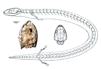 无足类也很特化,外形看上去像蚯蚓。头骨坚固,眼睛退化。个小,躯干脊椎可以多达200枚,尾短,四肢退化。胎生,没有青蛙那样的蝌蚪阶段。已知的化石记录很少。早期记录只有巴西古新世及晚白垩世的两枚脊椎。1993年基于美国亚利桑那下侏罗统发现的化石建立了曙蚓螈(Eocaecilia micropodia)。这批材料包括许多头骨及头后骨骼,能够提供全身所有骨骼的解剖学信息。这种基干的蚓螈类还保留有肢带和四肢,而后来的蚓螈类已经失去。2001年基于摩洛哥下白垩统又建立了一个种(Rubricaecilia monbarroni),此外在苏丹也发现白垩系也有零星化石。在美国上三叠统的钦利组发现了一些化石,2017年被命名为金氏钦利蛇螈(Chinlestegophis jenkinsi),被认为是基干的蚓螈类。