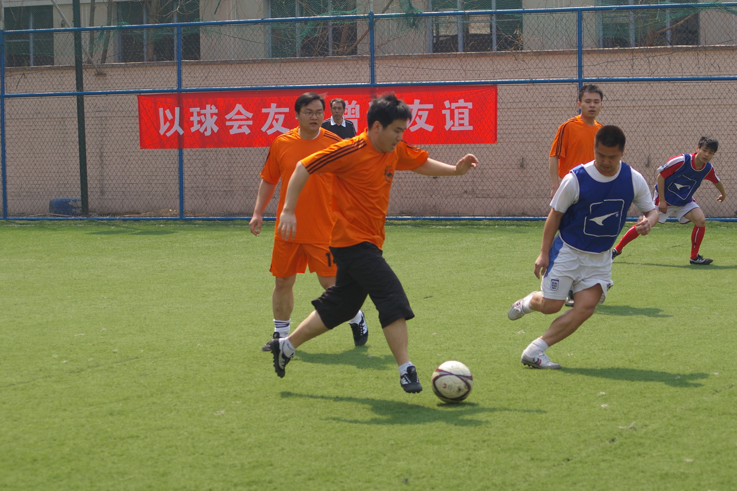 对阵本次比赛的主队—院足球强队微电子所时,我队队员冯小波发挥出色,独自拿下4粒精彩进球;本来前往助威的刘庆国临时客串门将并神勇的扑出很多必进之球。