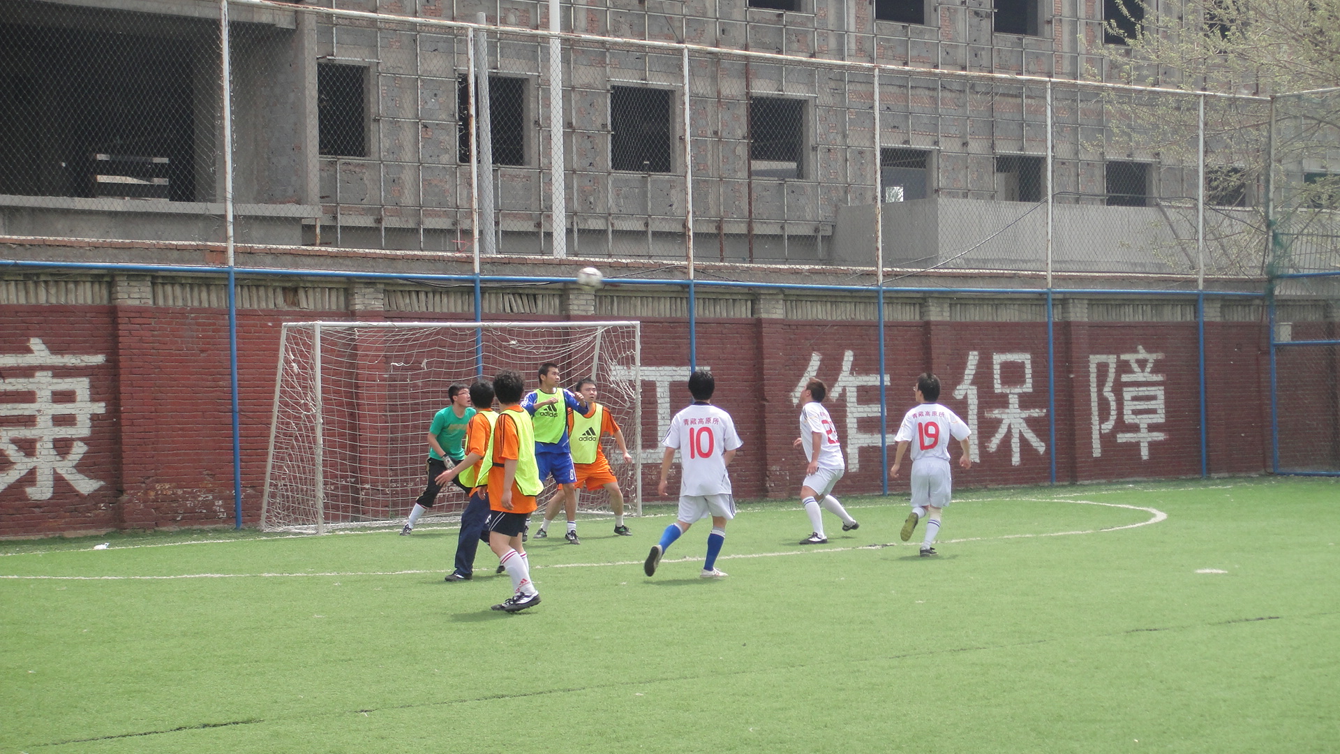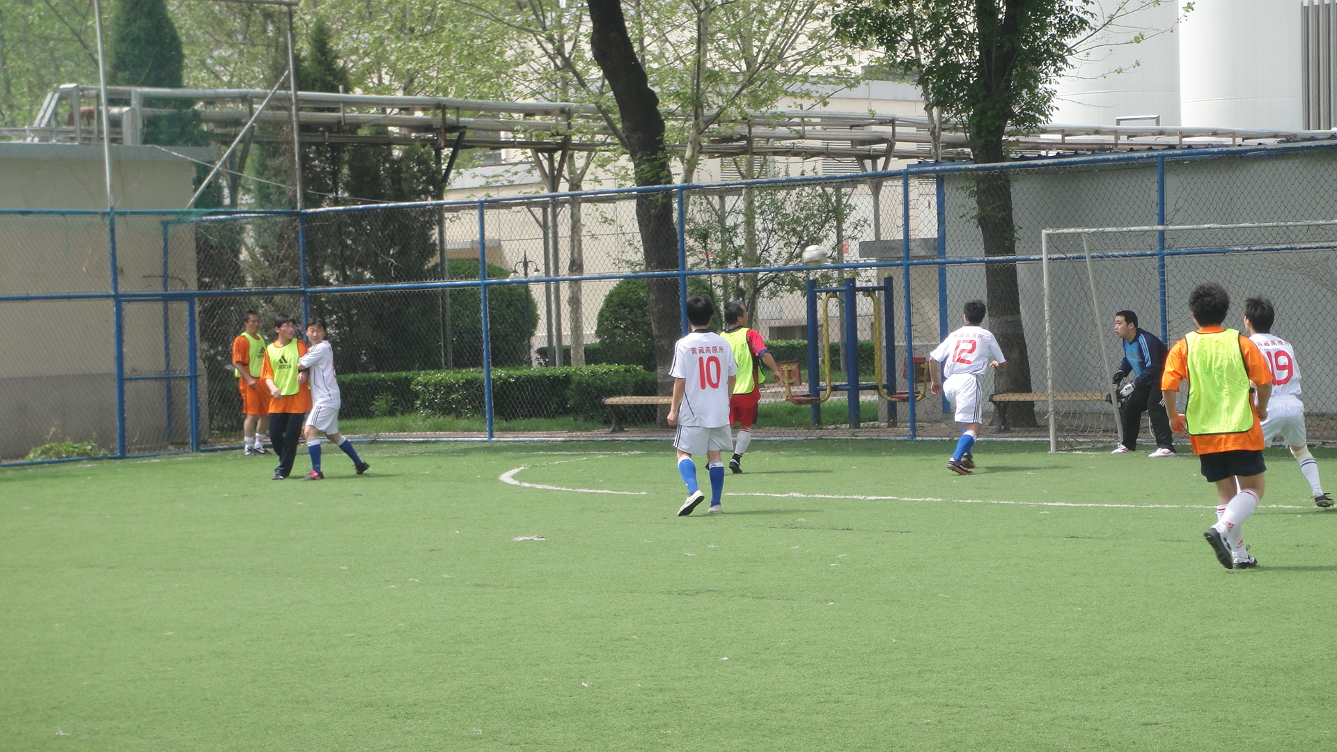 对阵青藏高原所时,我队赛前合理安排战术,坚定必胜信心。果然上半场开场之后,我队展现了强大的攻势,完全占据主动,创造出很多破门良机。下半场经过精心组织配合,在对方禁区前获得前场任意球,冯小波主罚穿越人墙,王根身补射打到对方后卫腿上折射入网,1:0,我队取得了领先。之后,全体队员越战越勇,并创造了一些更好的进球机会,但可惜至终场也未能再扩大战果。凭借着1:0这个比分,完成了我所足球队正式比赛的首场胜利。