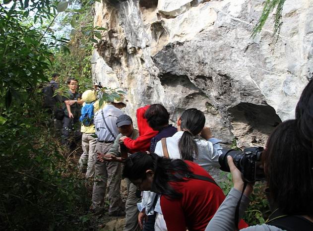 10月20日,我所职工疗养团在朱敏博士、王秋原高工的带领下,先后参观了我所广西课题组的化石挖掘点“石灰窑岩洞”、“大口洞”和“三合大洞”。在前往“石灰窑岩洞”的路途上,首先要穿越密不透风、沙沙刮脸的甘蔗地,上山时更是地形险峻,羊肠小路仅能容一人立足前行,进入“石灰窑岩洞”内,逼仄狭窄、没有灯光,低矮处之处只得爬行前进,而这些就是我所野外科研人员日复一日年复一年的工作环境。自2004年以来,我所便在广西崇左一带进行了多年的科学考察与发掘活动,其中在榄山智人洞发现的10万年前人类化石引起了学术界的轰动,相关研究入选2010年度“中国科学十大进展”。通过此次的实地考察,团友们深深感受到我所野外挖掘一线工作的艰辛以及野外工作者吃苦耐劳、忍受寂寞、默默奉献的精神,切实体会到我所众多重大科研成果是如何“香自苦寒来”。