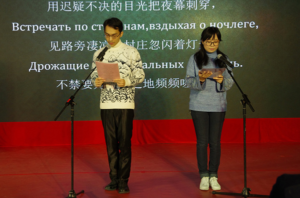 联欢会节目各具特色、精彩纷呈。开场的器乐合奏《武侠组曲》慷慨激昂,让观众们仿佛置身快意江湖世界;舞蹈协会带来的舞蹈《中国龙》欢快喜庆,仿佛使人嗅到了年味;人类室侯亚梅研究员带来的独唱歌曲《我爱你中国》为观众们展示了对祖国深切的热爱;研究生裘锐等人表演的自编自演的小话剧《启程》则为我们展示了我所建所初期的重大事件;研究生郭林带来的法语音乐剧《唐璜》选段赢得了大家热烈的掌声;研究生陈鹤等人带来了无伴奏合唱《向前走》,多声部的完美融合给观众们带来了一场听觉盛宴;高等室王世骐研究员的《天风荡荡》、管理分工会的合唱《走进新时代》情深意浓、回味悠长,全场响起了热烈的掌声;研究生毕黛冉和郭林带来的中俄双语诗朗诵《祖国》通过赞美大自然和人民表达了对祖国的热爱;古动物馆将爆笑坚持到底,带来了原创小品《四大才子点秋香》,将现场的欢乐氛围推向高潮;国际留学生Arya带来的伊朗歌曲《Jane Maryam》为观众们展示了异国的爱情故事;鱼爬室盖志琨副研究员等带来的自编自演的戏曲小品《丝路寻宗》将戏曲融入小品,道出了古生物工作者找寻化石的艰辛和坚毅的品质;研究生雷蕾、秦超的对唱《风吹麦浪》诉说了美丽的爱情;高等室李茜研究员等带来的小合唱《天边》,精心制作了野外工作和团队的背景视频,展示了苍茫浩瀚的大草原上古脊椎所“艰辛并快乐着”的野外考察,引起了全场热烈的掌声;重点实验室带来的大合唱《我和我的祖国》唱出了对祖国的赞美之情;舞蹈协会和重点实验室的《汉服秀》则给观众们展示了古今服饰的碰撞,寓意着古脊椎所大步迈进文化传承与创新发展的新时代