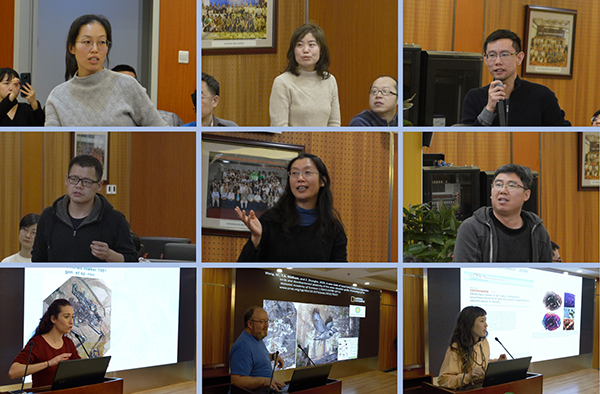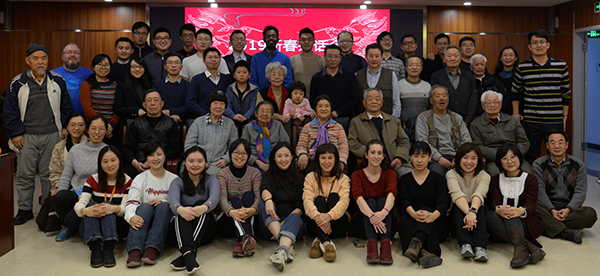 刘俊研究员介绍了2018-2019年度古鱼类与爬行类研究室的研究成果、野外工作及科普工作进展,研究室各位师生也对自己的研究方向、研究进展及成果进行了简要的介绍。在自由发言的阶段,退休前辈与青年一代研究者亲切交流,互致新年祝福。各位前辈回忆起上个世纪交通工具和餐饮条件极度艰苦野外工作经历,出差动辄数月,大城市间往返需要在火车上度过五天五夜,在夏季新疆进行野外工作饮用水极其有限,时刻面临生存挑战……。孙艾玲先生表示,看到古脊椎所如今工作环境焕然一新,研究进展日新月异,研究条件今非昔比,成果日益丰硕,倍感欣慰,她鼓励青年一代师生抓住机会,努力拼搏,创造出更多、更高的成绩。李锦玲先生回顾了自己在古脊椎所近半个世纪工作经历;董枝明先生鼓励年轻人多参加野外发掘,“发现就是成绩”;周忠和院士提醒新一代年轻人要有忧患意识。马凤珍先生特地创作一首五言诗表达了对本次聚会的喜悦和对大家的期许:“朋友情意浓,久别喜相逢。多少真诚话,加油再远行。”