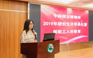 新生代表胡晓纯同学表达了成为古脊椎所一员的激动心情,表示会时刻牢记自己身上的社会责任和历史使命,主动学习,探索未知。老生代表李春晓鼓励新生们多阅读、多交流,预祝同学们度过一段美好又难忘的研究生生活。