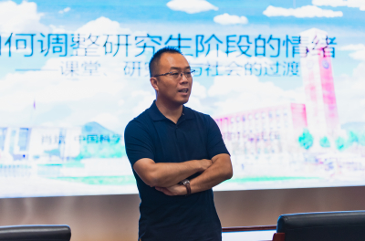国科大心理中心主任肖斌老师以《如何调整研究生阶段的情绪——课堂、研究室与社会的过渡》为题,向同学们阐释了情绪是怎么来的,引导大家理性应对情绪;鼓励大家在人生的这一阶段努力沉淀自己,多思多得。