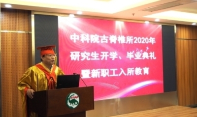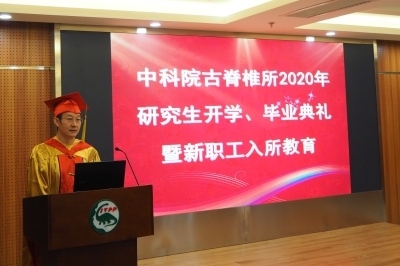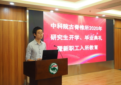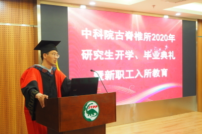 9月11日,古脊椎所2020年研究生开学典礼、毕业典礼暨新职工入所教育活动在科技大厦九楼报告厅隆重举行。所长、党委书记邓涛研究员、副所长徐星研究员、党委副书记、纪委书记魏涌澎、所学位委员会主席倪喜军研究员、所学位委员会副主席、古鱼类与爬行类研究室主任刘俊研究员、学位委员会委员、国科大人文学院考古与人类学系主任杨益民教授、导师代表王元青研究员、赵凌霞研究员、葛俊逸副研究员、2020年夏、秋季毕业生和亲友、在读研究生、新进站博士后等70余人出席了典礼。