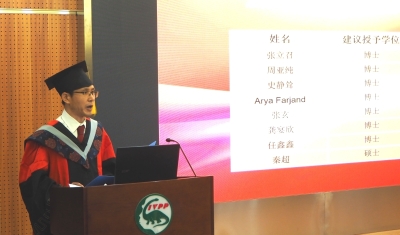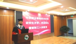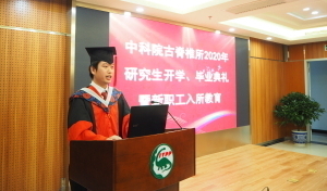 龚宴欣和伊朗留学生Arya Farjand代表毕业生发言,他们回顾了在研究所学习、生活的难忘经历,表达了对研究所、导师、同学、亲友的感恩之情,勉励师弟师妹们要继续努力、不断前行,并表达了对研究所的真诚祝福。