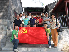 为庆祝新中国成立60周年,在纪念建党88周年前夕,5月27日,古脊椎所管理支部全体党员以及入党积极分子14人,赴京郊门头沟区参观“平西情报交通联络站”。