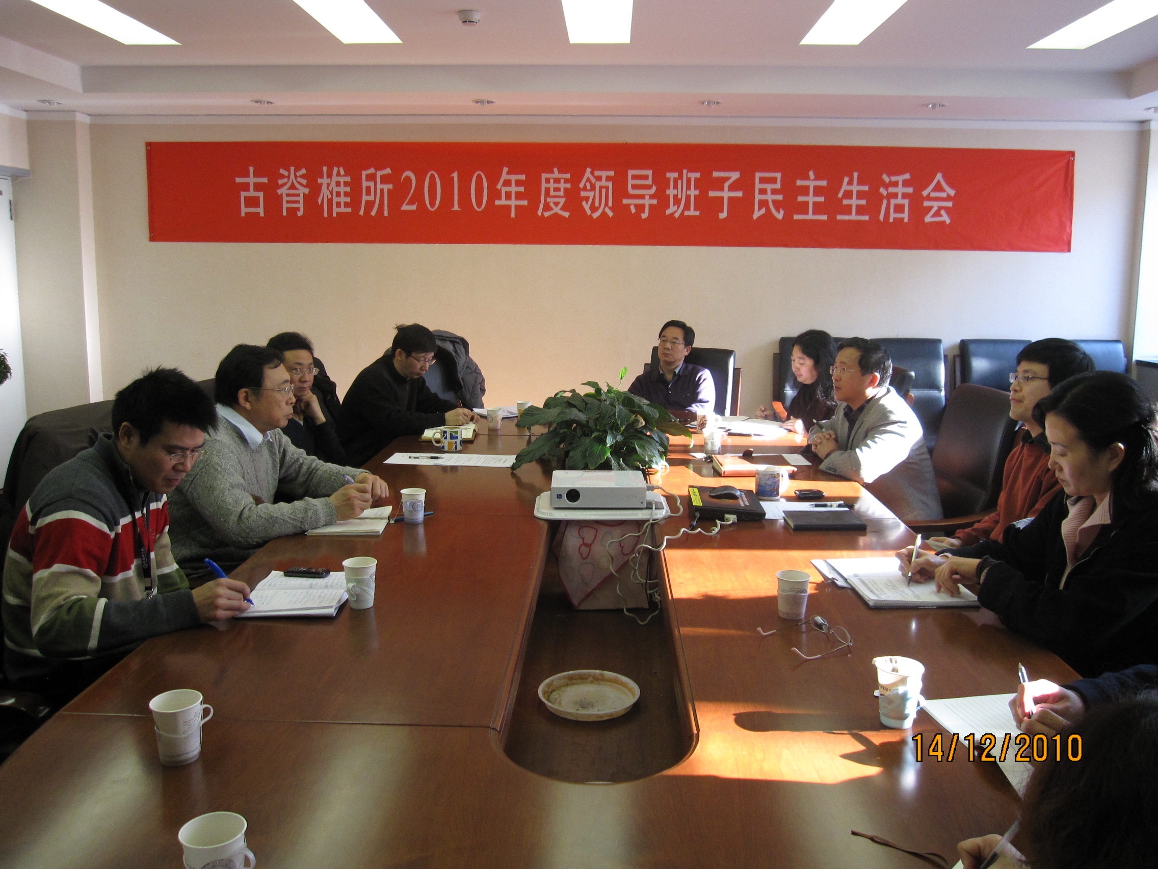 12月14日上午,古脊椎所党委召开2010年度领导班子民主生活会。古脊椎所党委书记董军社、所长周忠和、副所长高星及党委委员、纪委委员、所长助理、工会主席、副主席参加会议,院京区党委组织员周凭栏、北京分院纪检监察审计处处长管兵出席会议。会议由董军社主持。