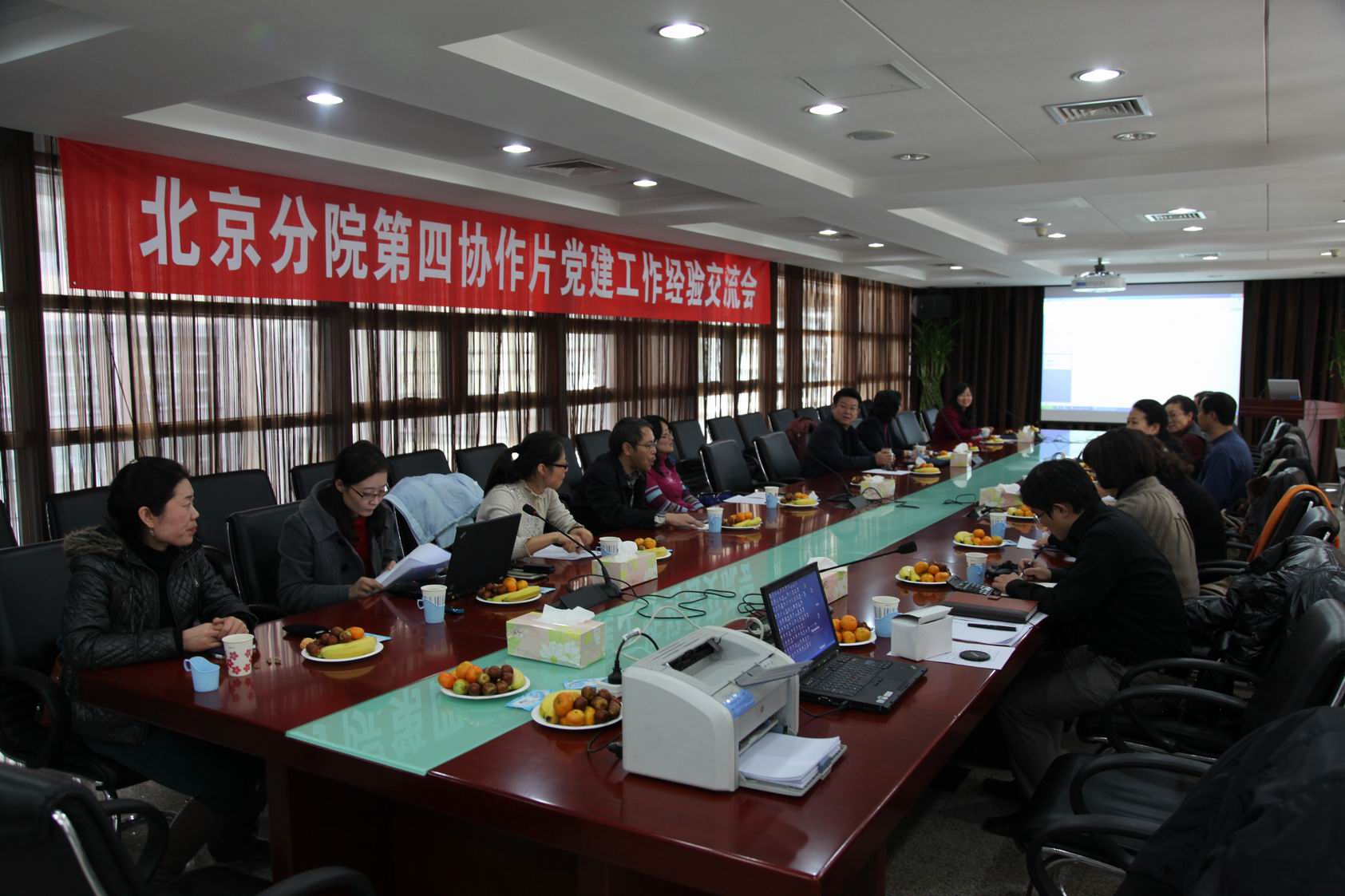 11月30日,北京分院第四协作片2011年度党建创新交流会在微电子所召开。协作四片各单位党委书记、党办主任出席,会议由协作四片秘书长、古脊椎所党群处长马安娜主持。