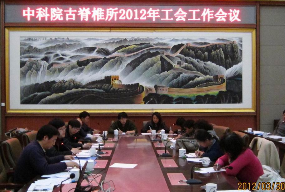 3月29、30日,古脊椎所2012年工会工作会议在京召开。所党委书记董军社参加会议并听取工会2011年度工作汇报和2012年工作安排。我所职代会代表、团总支书记、妇委会主任、各文体协会负责人参加了会议,会议由工会主席张江永主持。
