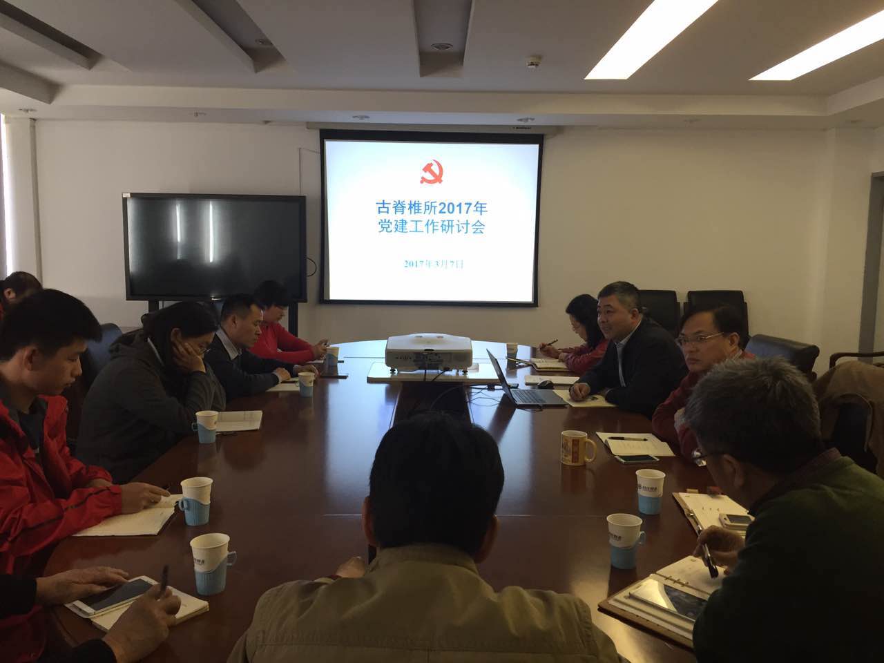 3月7日,古脊椎所召开2017年度党建工作研讨会。所党委委员、纪委委员、党支部书记、副书记参加会议,会议由党委书记苗建明主持。