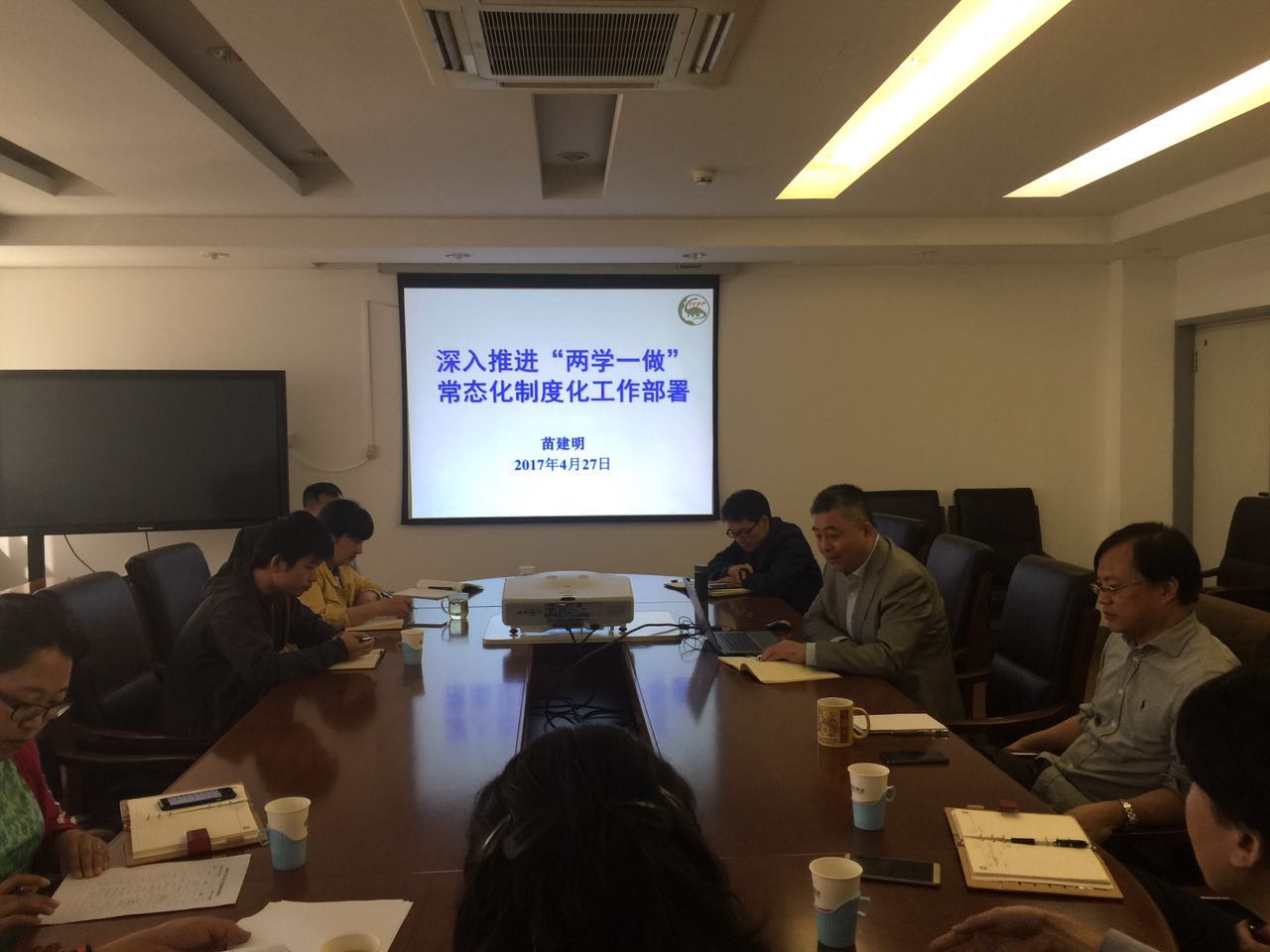 苗建明首先传达了中央和院党组对开展“两学一做”学习教育常态化制度化工作的要求,特别是习近平同志对推进“两学一做”学习教育常态化制度化作出重要指示和刘云山同志在推进“两学一做”学习教育常态化制度化工作座谈会上的讲话精神。