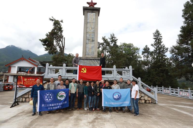 古脊椎所二次青藏科考东线考察队考察石鼓更新世地层间隙,途经石鼓镇红军过丽江博物馆,临时党小组成员在中国工农红军第二方面军长征渡江纪念碑前,缅怀先烈,谨记初心,重温了入党誓词。