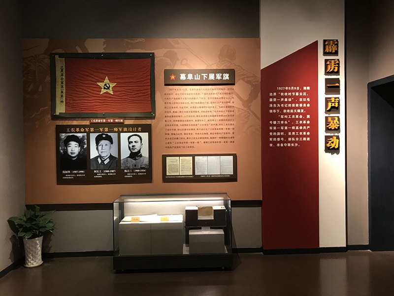 1927年9月9日,在中国革命的危急关头,毛泽东等发动和领导了湘赣边界的秋收起义。这是继南昌起义之后,中国共产党对国民党反动派叛变革命和实行屠杀政策的又一次英勇反击。修水是秋收起义的主要策源地,起义前夕,工农革命军的第一面旗帜在修水设计、制作并率先升起。9月9日清晨驻守在修水的师部及其所属一、四团,师直特务连在县城紫花墩举行了气壮山河的誓师大会,打响了秋收起义的第一枪。第二次国内革命战斗时期,老一辈无产阶级革命家彭德怀、罗荣桓、何长工、滕代远、肖克、王首道等均在修水留下了战斗的足迹。因此,秋收起义在修水有三个第一:组建我党第一支工农革命军,设计制作,并率先打出的第一面军旗,打响秋收起义的第一枪。