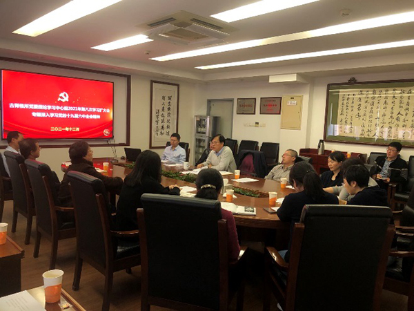 12月6日下午,古脊椎所召开党委理论学习中心组2021年第八次学习扩大会,专题深入学习党的十九届六中全会精神,深化拓展党史学习教育。院党史学习教育第十一指导组组长刘松林书记、成员张睿超主任参会指导,所领导班子成员、党委委员、纪委委员、支部书记、中层干部近20人参加会议。会议由党委书记、所长邓涛主持。