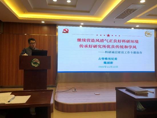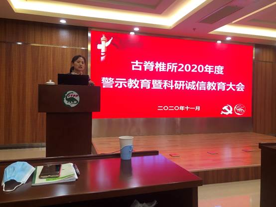 11月12日,古脊椎所纪委组织召开了2020年度全所警示教育暨科研诚信教育专题报告大会。会议由副所长王秀琴主持,采取线上+线下方式进行,全所职工、研究生共180余人参加了专题报告会。