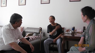 在庆祝中国共产党建党97周年之际,古脊椎所党委书记苗建明、党群工作处处长马安娜、离退办邵颖以及离退休党支部代表王秋元一起走访慰问了身患重病及部分年老体弱的老党员,为老党员们送上组织的亲切关怀和慰问金,苗建明书记代表所党委关心问候老党员们的生活和健康情况,他对老党员说,你们是我党的宝贵财富,为党的建设和古脊椎所的发展作出了积极贡献,希望老党员好好保重身体,健康快乐地享受晚年生活。老党员们怀着激动的心情,感谢党委领导和党组织的关心和爱护,表示在今后的生活中,一定积极支持、配合党组织工作,发挥老党员的余热。(古脊椎所离退办供稿)