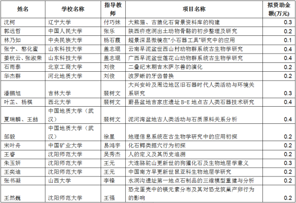 关于中科院古脊椎所2020年大学生“科创计划”获资助项目名单的通知