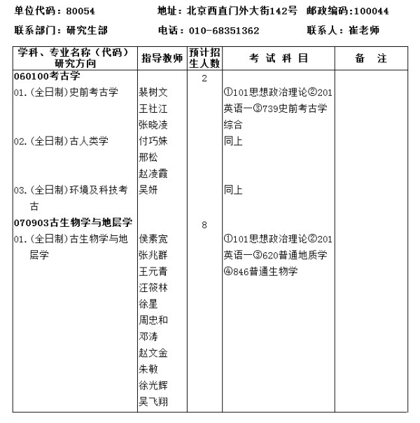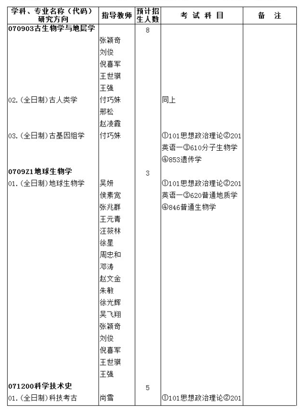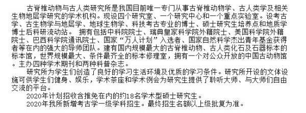中国科学院古脊椎动物与古人类研究所2020年攻读硕士学位研究生招生目录