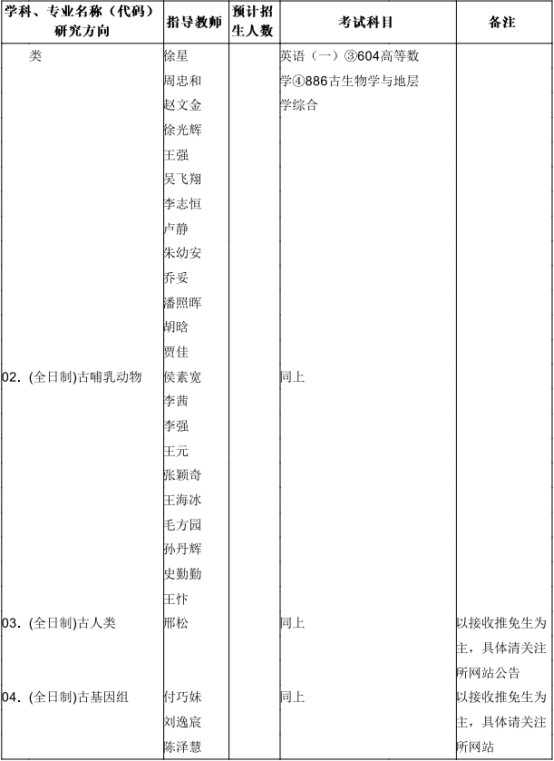 古脊椎动物与古人类研究所招收全日制学术型硕士研究生,旨在培养培养德智体全面发展,爱国守法,在本学科专业领域内具有坚实的基础理论和系统的专业知识,了解学科和研究方向的历史、现状、国内外动态和发展方向;参加野外工作实践;通过开展至少一项具体的研究工作得到从事科学研究的基本训练;具备在导师指导下从事科学研究或独立担负专门技术工作的能力的优秀人才。