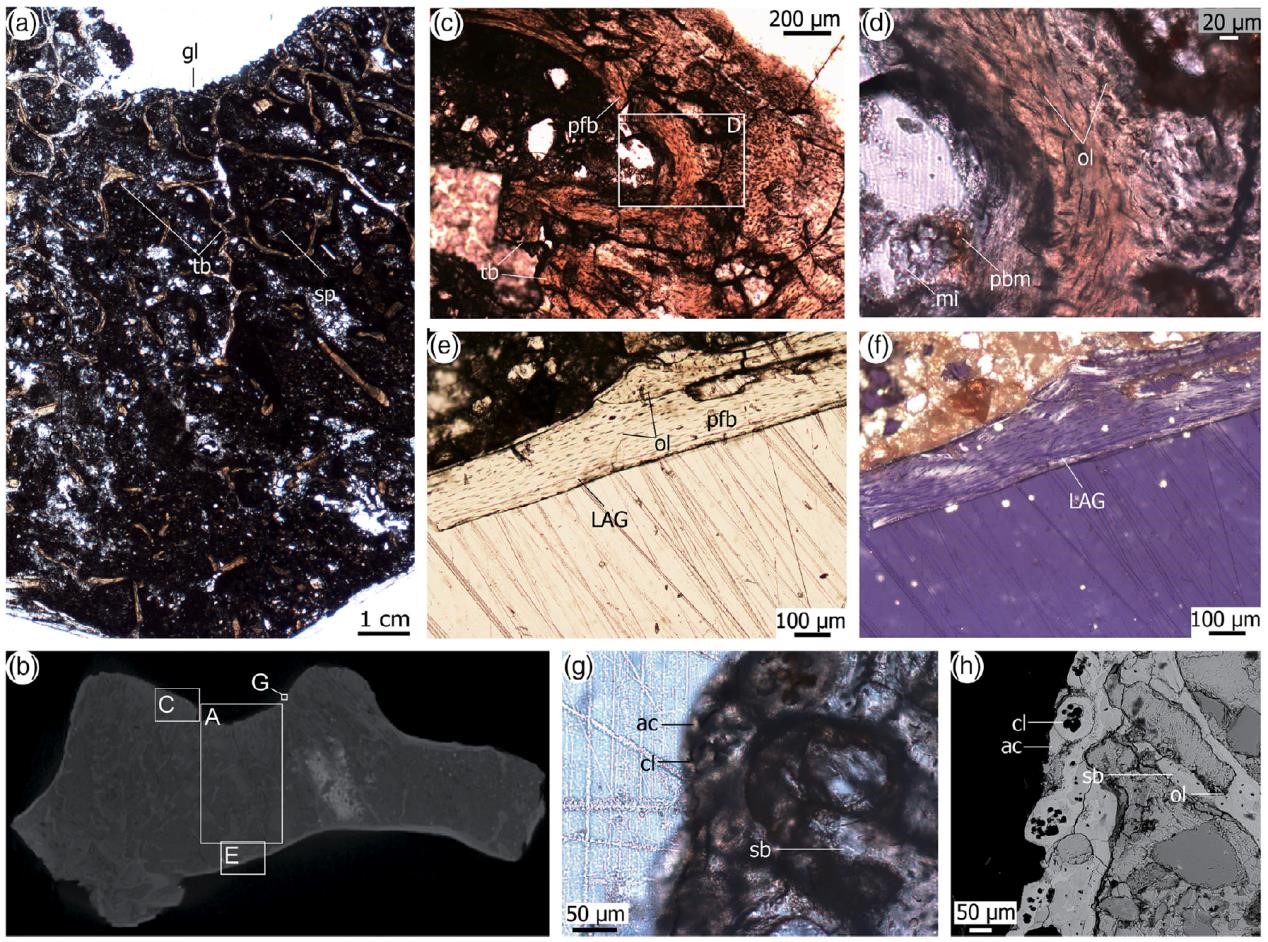 为了深入了解翼龙的飞行机制,本研究对数件哈密翼龙肩带标本开展了详细的形态学和组织学分析。组织学特征分析发现了哈密翼龙肩臼窝中的钙化透明软骨组织,其肩胛骨与乌喙骨在个体成年之前就已经完全愈合形成骨性结合,这与鸟类中终生不愈合的肩胛骨与乌喙骨、以及现生鳄类在成年中愈合的肩胛乌喙骨均不同。该特征在系统发育位置非常基干的翼龙中就已经出现,可能代表翼龙类的祖征。哈密翼龙肩带的愈合情况表明翼龙并未如鸟类一样,伴随飞行的演化而出现分离的肩胛-乌喙骨关节,反映了翼龙与鸟类飞行机制的差异性。
