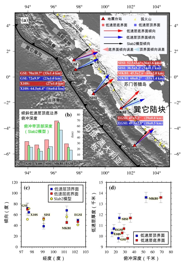 该项研究为约束俯冲带结构和俯冲板片界面几何形态提供了新的方法,对认识苏门答腊以及其他俯冲带板片脱水—上覆地幔楔水化等过程带来了新的启示。