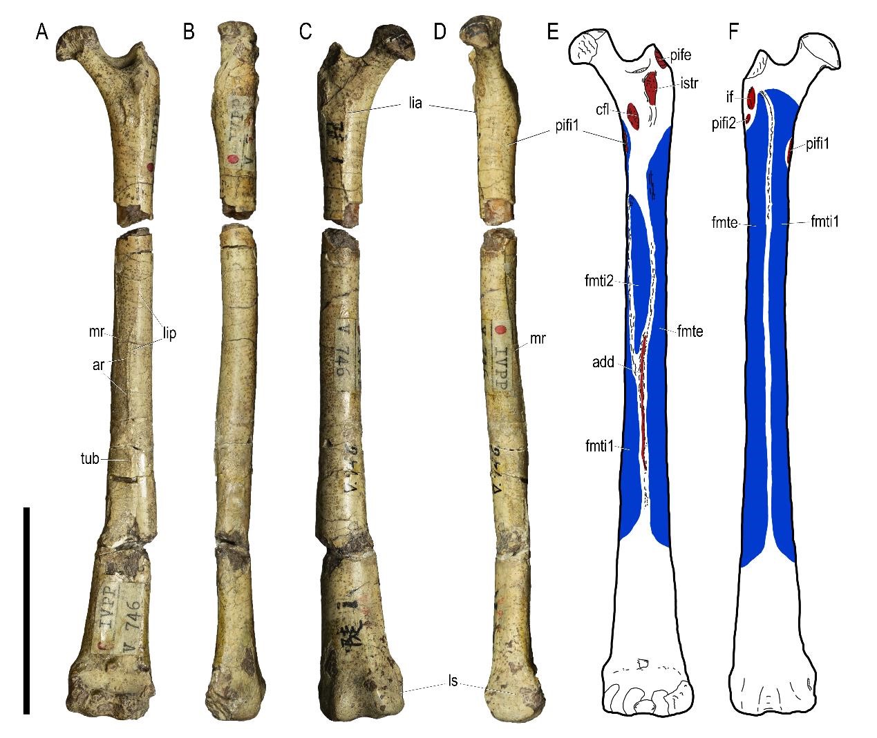图 1山东莱阳下白垩统青山群陡山组神龙翼龙超科的股骨(IVPP V 746)