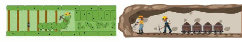 图2 昆虫潜叶和挖矿的卡通图(引自https://depositphotos.com/cn/vector/landscape-coal-mining-underground-scene-illustration-483122846.html)
