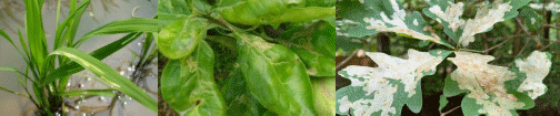 图4 左 水稻潜叶蝇潜食水稻叶片;中 柑橘潜叶蛾潜食柑橘叶片;右 潜吉丁危害栎树叶片(分别引自https://www.sohu.com/a/314853393_99995850;https://kknews.cc/agriculture/rp3no4x.html;http://usinggeorgianativeplants.blogspot.com/2022/06/white-oak-leaf-damage.html)