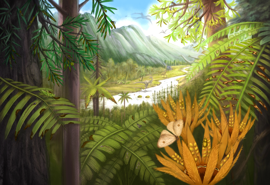 图8 内蒙古宁城道虎沟中侏罗世燕辽生物群昆虫潜叶行为复原图,左笑然绘(引自原文)