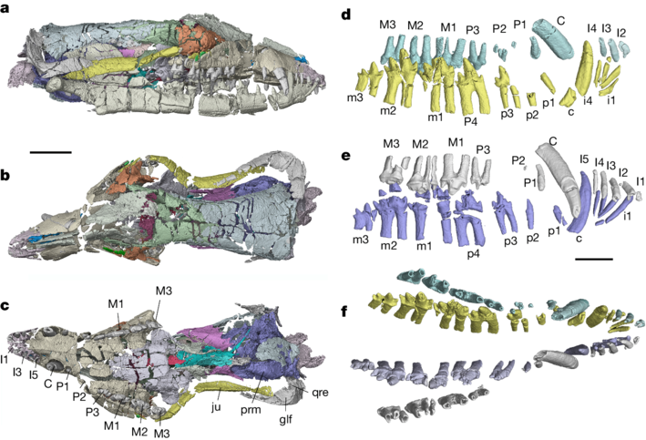 图4. 杨氏滇尖齿兽头骨及齿列重建