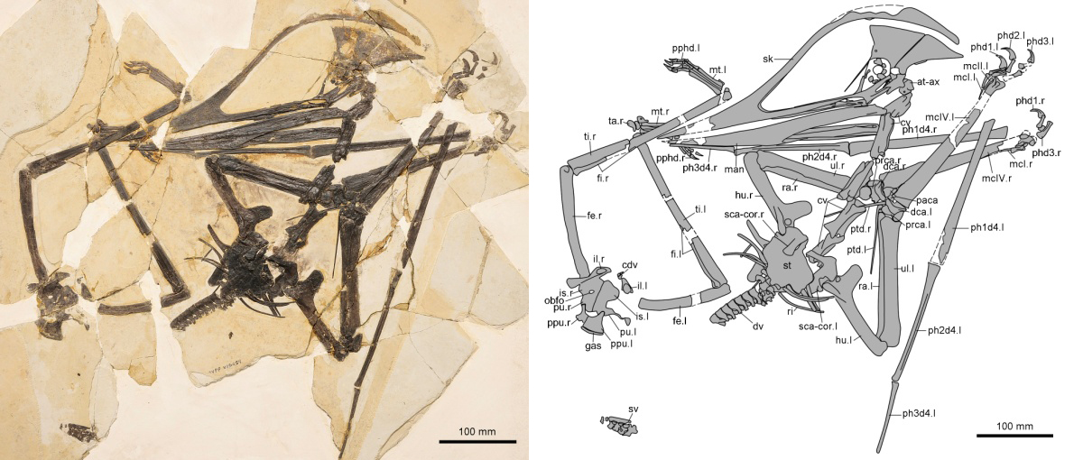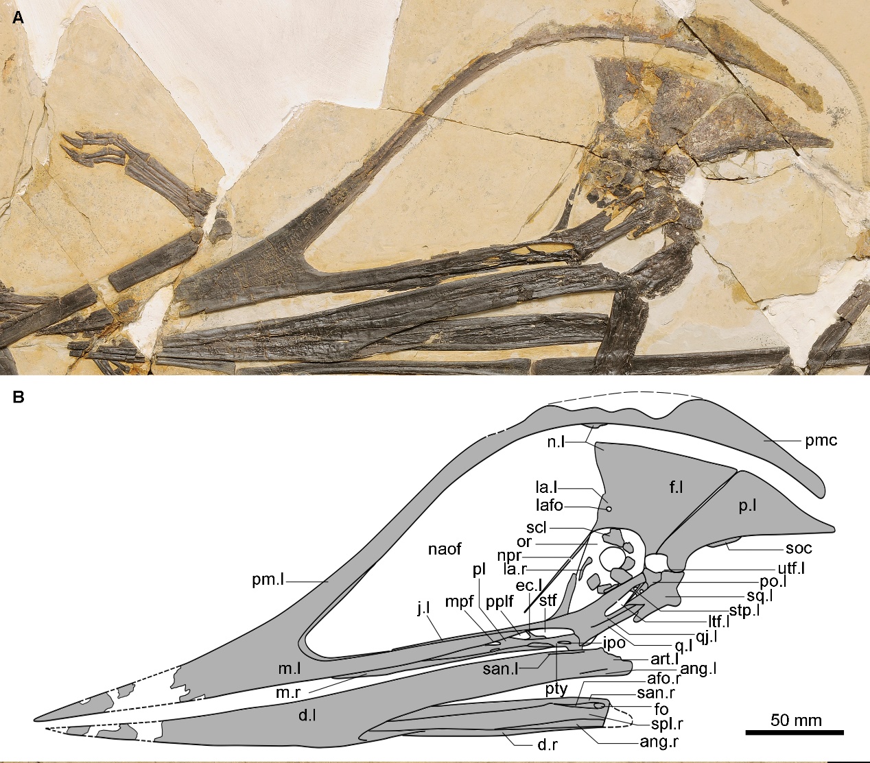 近日,Springer Nature旗下的《科学报告》(Scientific Reports)报道了一件辽西热河生物群保存完整精美的翼龙骨架和一件不完整的翼龙头骨化石。中国科学院古脊椎动物与古人类研究所汪筱林研究员和巴西国家博物馆/巴西里约联邦大学Alexander Kellner教授团队基于对这件标本的合作研究,建立了朝阳翼龙科(Chaoyangopteridae)一新属种——友好美丽飞龙(Meilifeilong youhao gen. et sp. nov)。种名“友好”代表着中巴两国科学家在翼龙等古生物研究领域持续20年的友好合作。