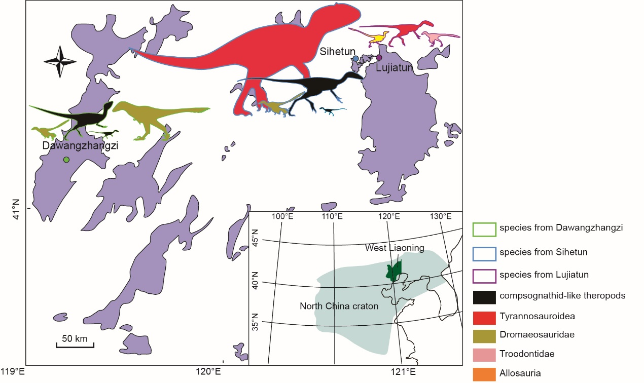 辽西热河生物群主要化石产地的兽脚类恐龙物种组成