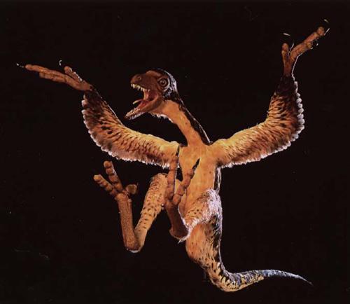 1996年发现的中华龙鸟化石显示,这种长着原始羽毛的动物并不属于鸟类,而是一种典型的小型兽脚类恐龙。