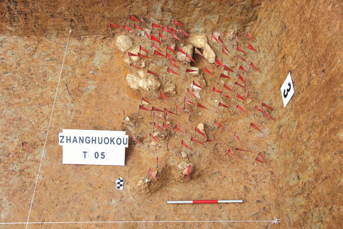 本次发掘中,从遗址不同时代形成的黄土及古土壤堆积地层中已出土各类石制品16000余件,除此此外,还在遗址周围陆续采集到脱层石制品数百件。张豁口地点地层中出土的石制品种类包括石料、石锤、石砧、石核、石片、经过二次加工修理的工具以及碎片屑(块)等。在修理的工具类型中,既包含有手斧、手镐、薄刃斧、砍砸器、大型石刀和石球等重型器物,又含有轻型的刮削器和尖状器等。遗址出土石制品中,小碎片屑数量最大。一些石制品出土时还可以在原地拼合起来。另外,在探方T3第二层中部东南角、探方T6第三层上部东南角和探方T5第三层上部东北角等区域清理过程中,在很小的范围内,还分别发现了原始人类打制石器时遗留的作业点,其中在T3作业点观察到数件可拼合的浅色石英岩石制品,说明遗址中相当一部分石制品为原位加工时废弃后,被黄土沉积物快速掩埋起来。