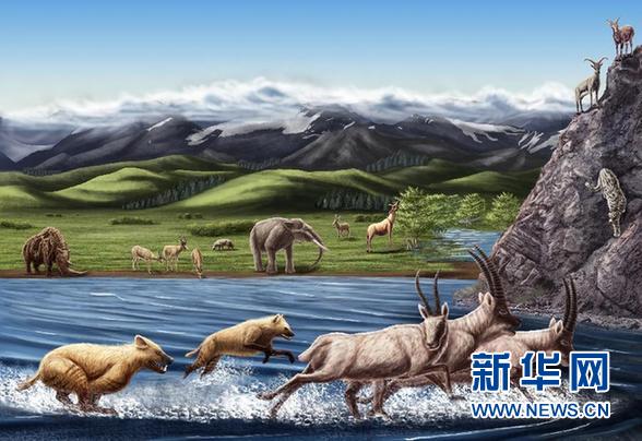 札达盆地上新世哺乳动物群生态复原(中科院古脊椎动物与古人类研究所供图)。 新华社发