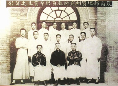 1916年与地质研究所学员合影,前排从左至右分别为翁文灏、章鸿钊、丁文江。