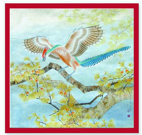 创作于2001年的《古韵:热河原始鸟生态复原》,运用了中国传统绘画技法来表现在中国发掘出土的古生物化石,可以说再合适不过,不仅展示了科研成果,同时也传达了中国传统绘画技法之美。许勇在采访中介绍说,要画好古生物复原画,就要拥有绘画知识、古生物专业知识,还要对化石本身及其共生生物群,当时的地理地貌等古生态环境、古气候环境知识有所了解。