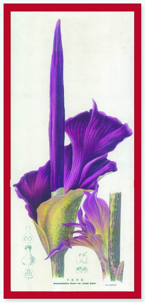 冯澄如的画因为年代久远,当时的保存技术又比较落后,已经很难寻得。几经辗转,李爱莉最终与冯氏后人取得联系,获得了此次展览的几幅作品。值得一提的是《普通蒟蒻》这幅作品,创作于1937年。当时抗日战争开始,《中国植物学杂志》停刊,冯澄如为停刊号创作了该幅作品。蒟蒻的形象像一把利剑,代表了一种拳拳爱国心。