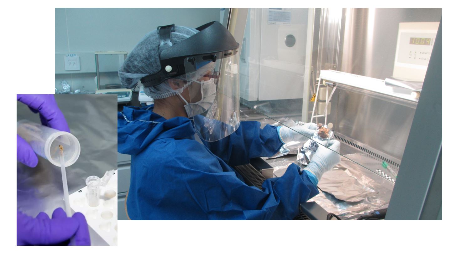 ▲科研人员正在超净实验室中小心翼翼地“钓取”古人类DNA